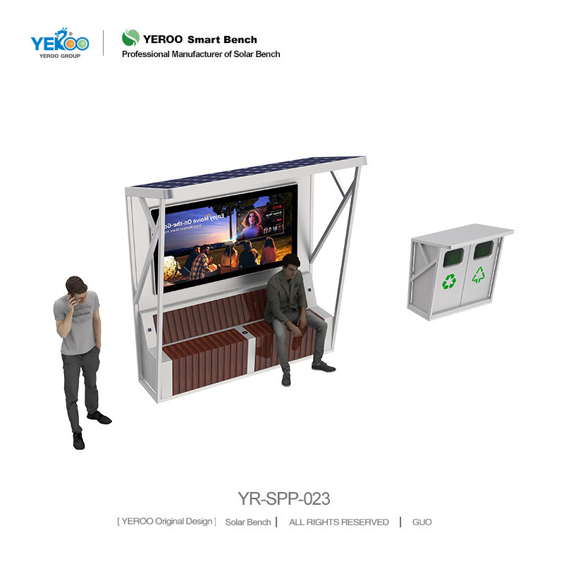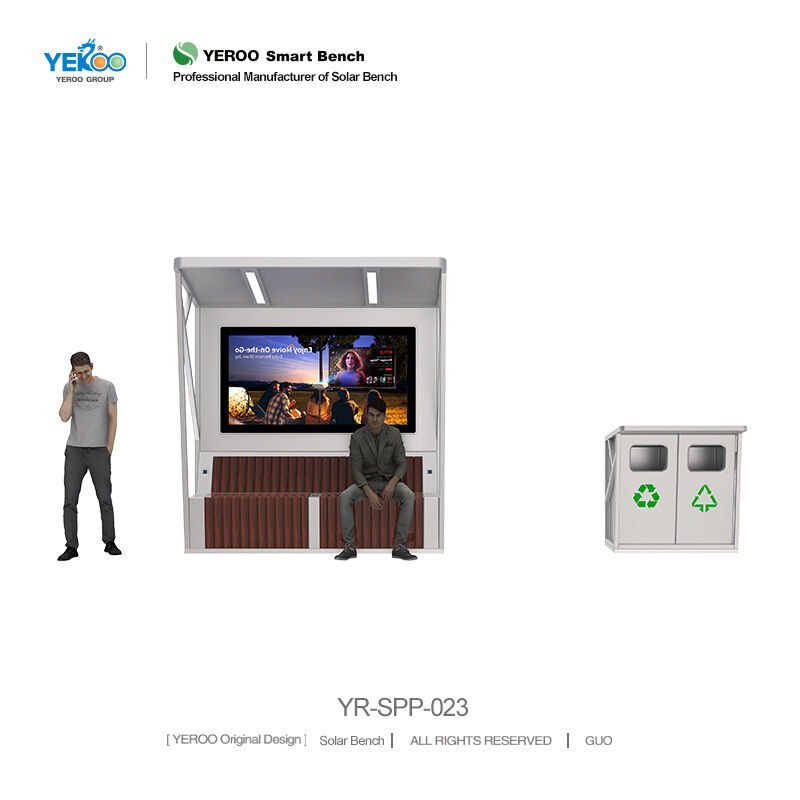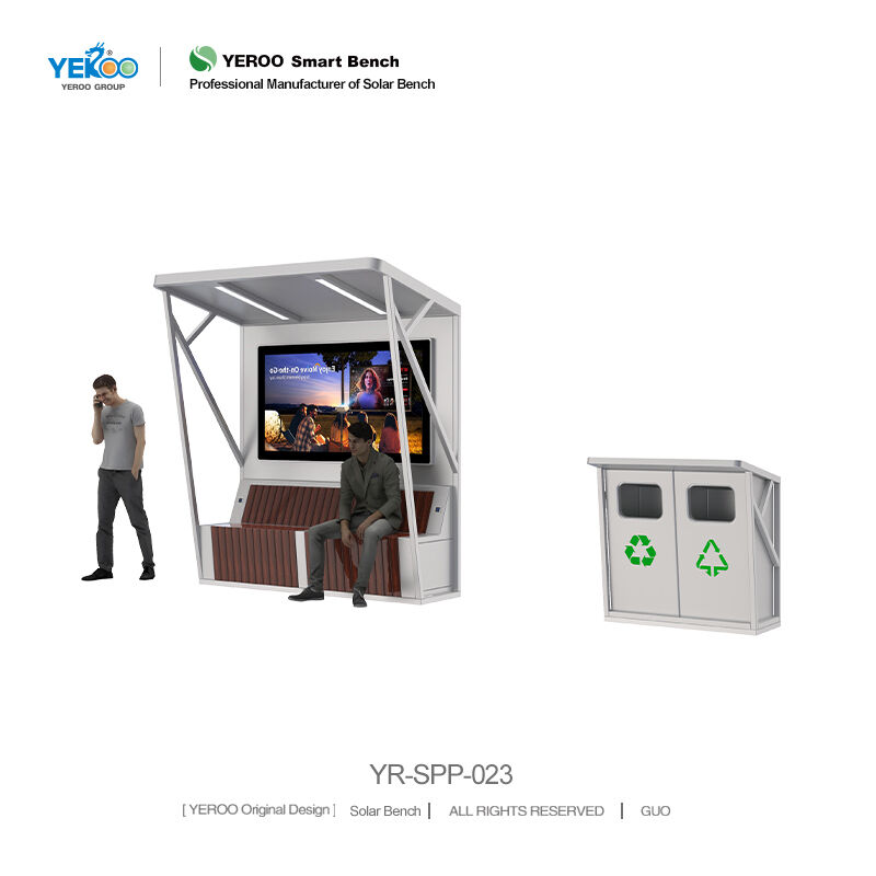Street Solar-powered Bus Shelter with Garbage Bin- YR-SPP-023